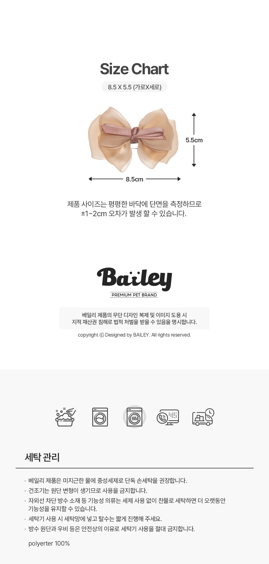 Bailey這款「柔霧紗感蝴蝶結別針」以輕盈薄紗堆疊出立體波浪造型,柔霧色調溫柔不張揚,呈現出韓系精品般的精緻質感。無論別在衣服、項圈、胸背帶或拍照禮服上,都能瞬間點亮整體造型,讓毛孩像小天使一樣仙氣飄飄。