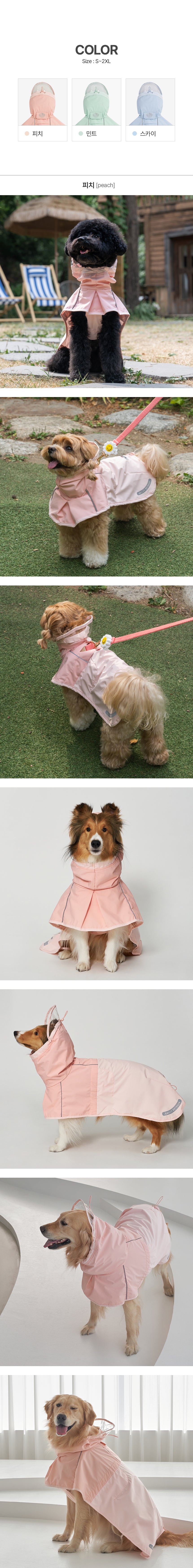 韓國🐾BAILEY💧【梨花娘】新品上架💕貼心可透明帽沿輕薄防水安全反光設計寵物雨衣(3色)