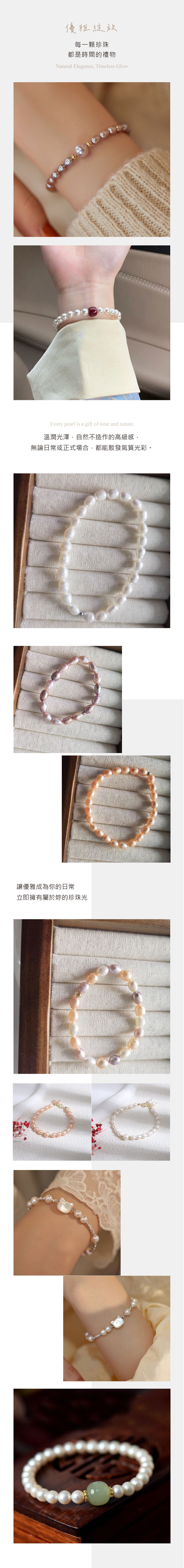 珍珠手鍊是集優雅、智慧與幸運於一身的經典飾品。它象徵純潔與高雅,同時也能為配戴者帶來寧靜、情緒平衡與自信。珍珠手鍊的經典設計使其百搭又永不過時,是展現個人品味與風格的絕佳選擇。