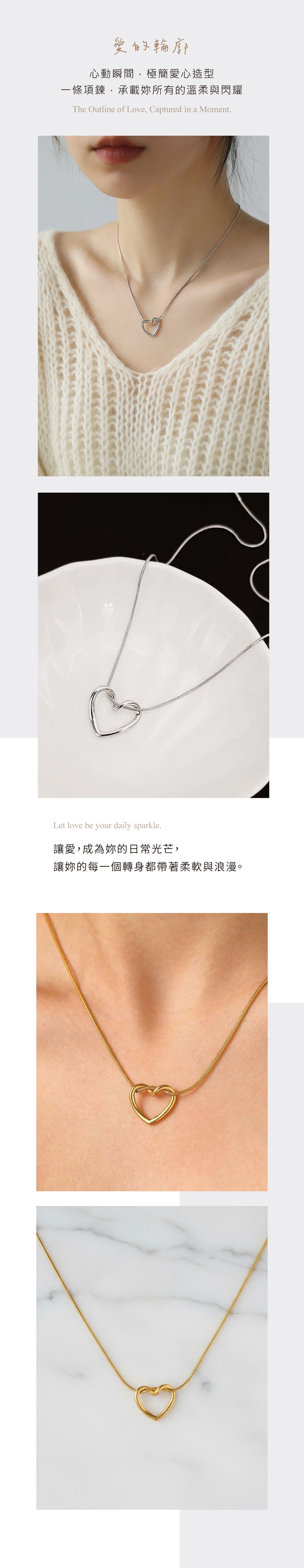 新品上架【梨花瑪雅】愛的輪廓💖鈦鋼愛心鎖骨細項鍊(2色)