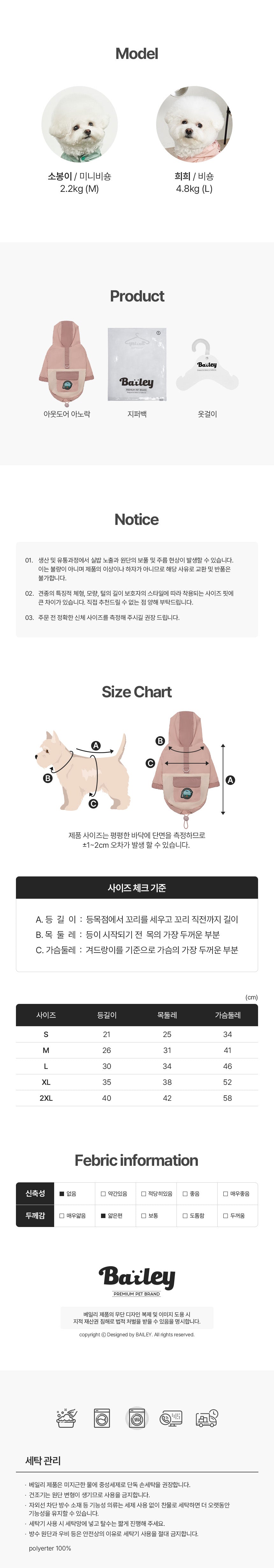 韓國新品上架【梨花娘】🐾BAILEY 🐶秋冬新品 舒適透氣防風防水輕便連帽外出寵物服飾(2色)