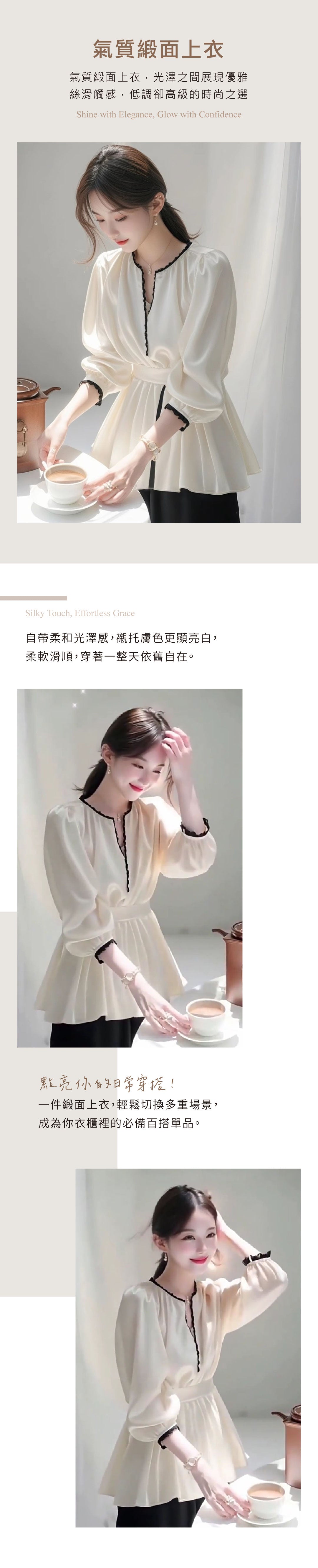 🆕新品上架💖【梨花瑪雅】熱賣款😘氣質緞面黑色蕾絲滾邊高級感雪紡上衣
