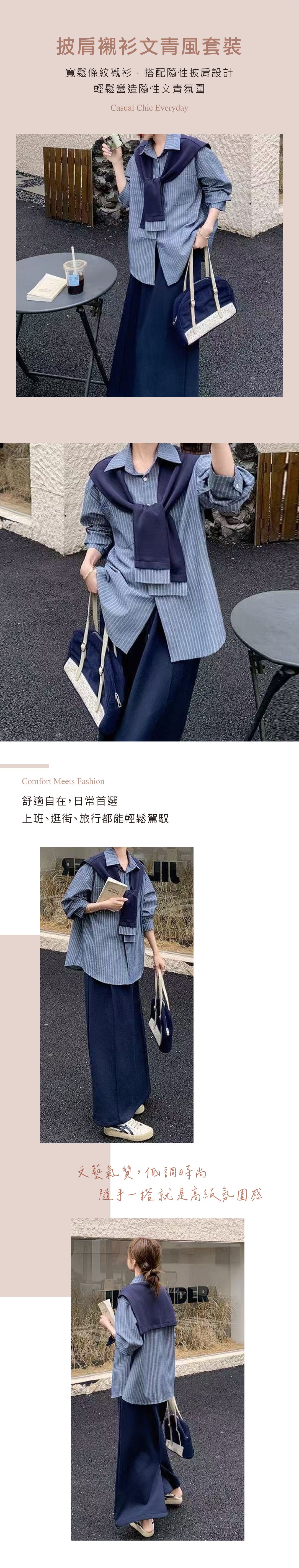🆕新品上架💖【梨花瑪雅】秋款披肩條紋襯衫減齡穿搭休閒韓風三件式套裝🤞