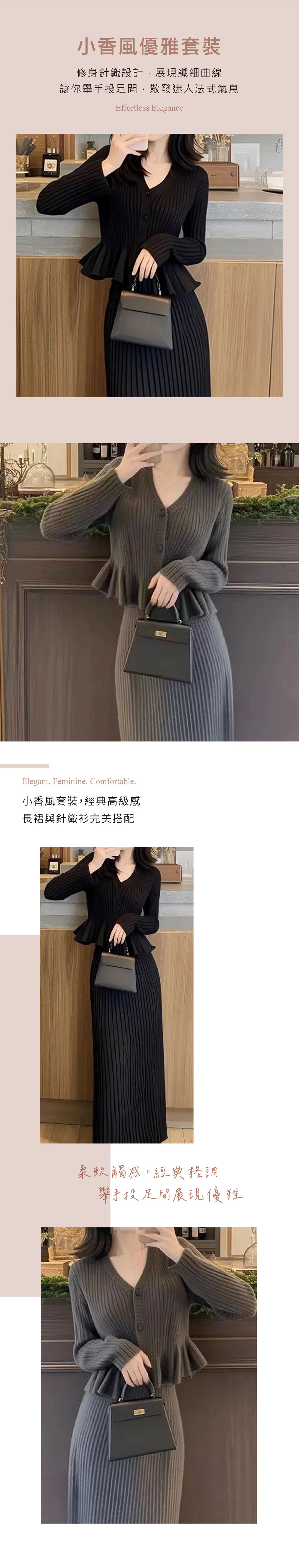 🆕新品上架💖【梨花瑪雅】秋冬款V領傘擺氣質小香風針織兩式長裙套裝(2色)🌹