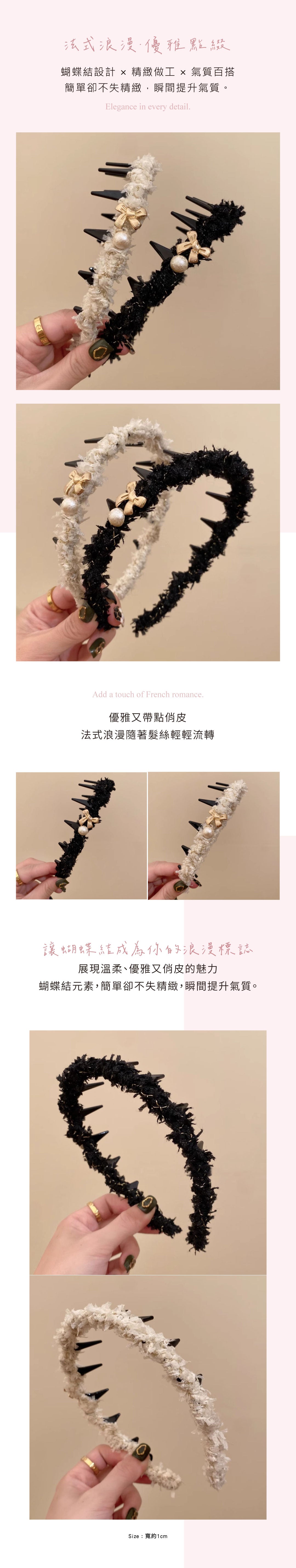 🆕新品上架【梨花瑪雅】💕法式氣質精緻蝴蝶結珍珠小香風高顱頂防滑髮箍(2色)