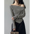 🆕新品上架【梨花瑪雅】秋天新款條紋修身慵懶露肩上衣(2色)🤞