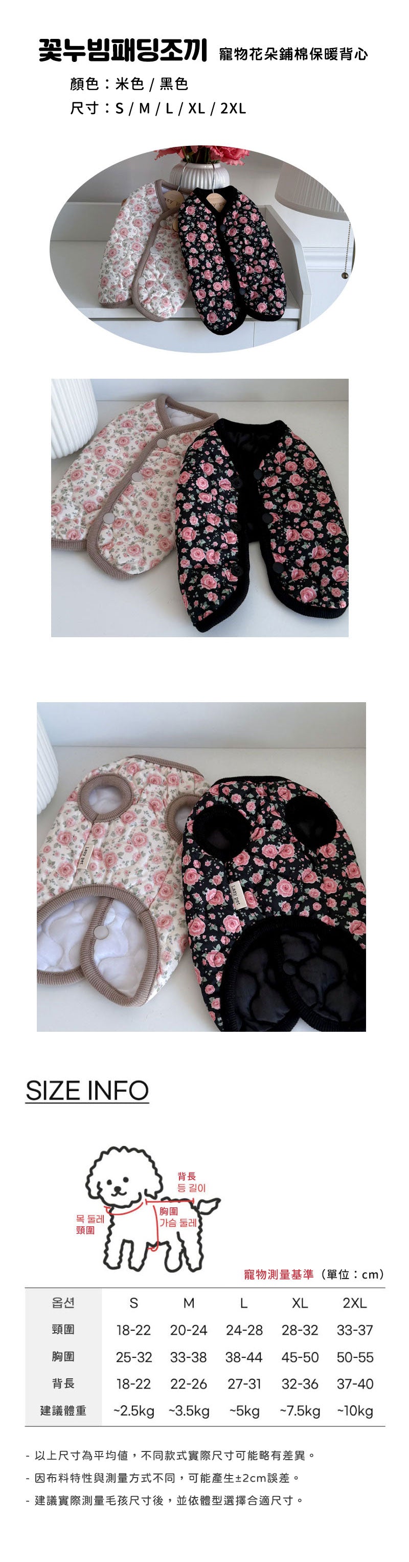 💜新品上架【梨花娘】✈️南大門復古風韓星也瘋狂1980年代爆紅玫瑰小碎花鋪棉背心寵物服飾(兩色)