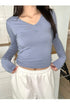 韓國 muahmuah 刺繡LOGO縫線 V領 長袖T恤 (現貨+預購)